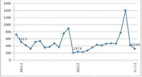 2月份,全國(guó)拍賣業(yè)實(shí)現(xiàn)成交額319.89億元,同比2012年增長(zhǎng)34.5%,同比2011年仍然下降,降幅為37.6%。受春節(jié)長(zhǎng)假因素的主要影響,2月全國(guó)拍賣成交場(chǎng)次較1月減少了1601場(chǎng),成交額環(huán)比1月減少104.2億元,環(huán)比降幅為24.6%。(見(jiàn)圖1)