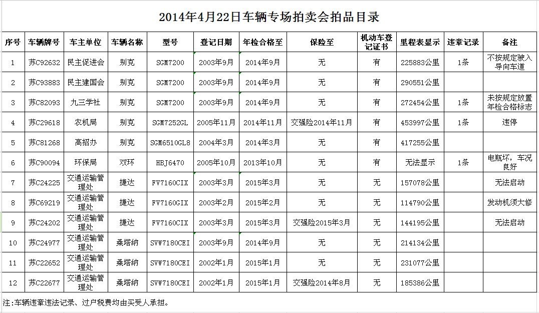 有意競(jìng)買者須持有效證件并交納每輛車1萬(wàn)元保證金辦理報(bào)名手續(xù),報(bào)名截止至4月21日16時(shí)。