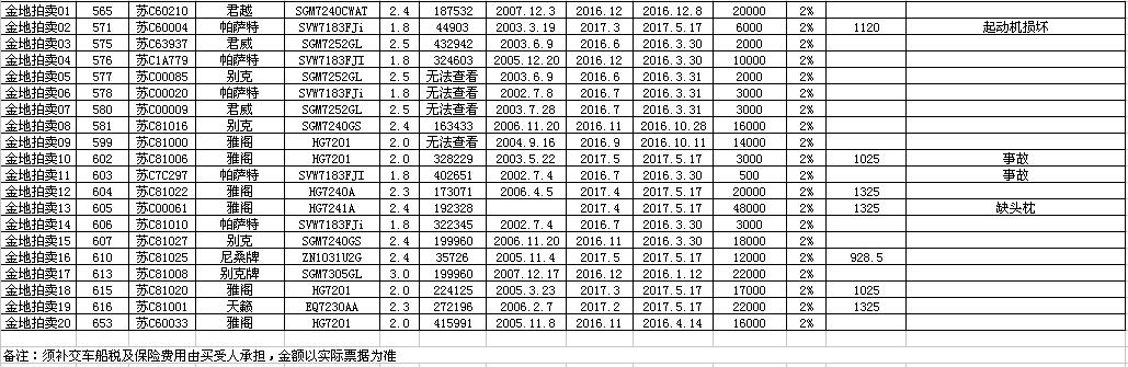 特別說明:本場拍賣會限報500個競買號牌,達(dá)到限定號牌數(shù)即停止辦理報名手續(xù)。每個競買人限報5個競買號牌,每個競買號牌只能競拍成交一輛車。