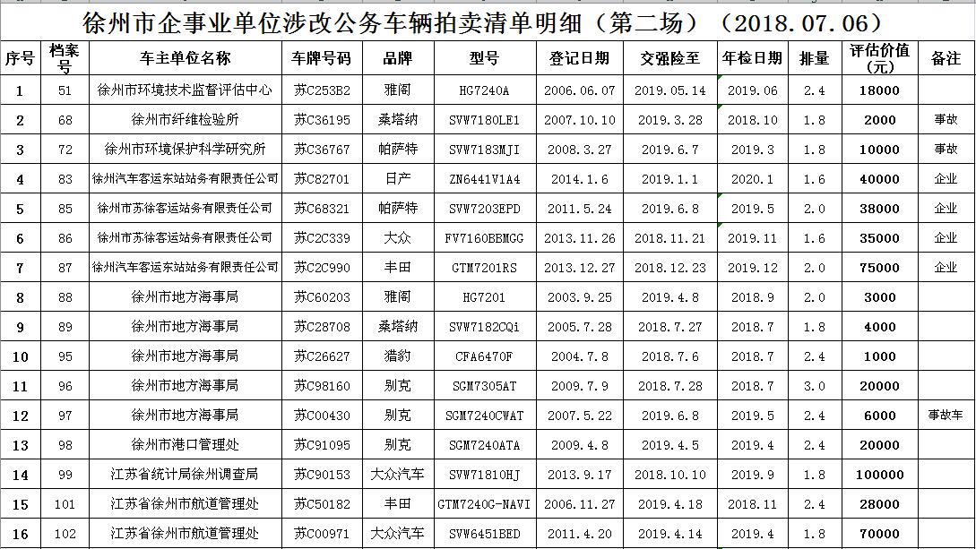 一、拍賣標的:徐州市企事業(yè)單位改革公務車輛(詳見每期拍品目錄)。
