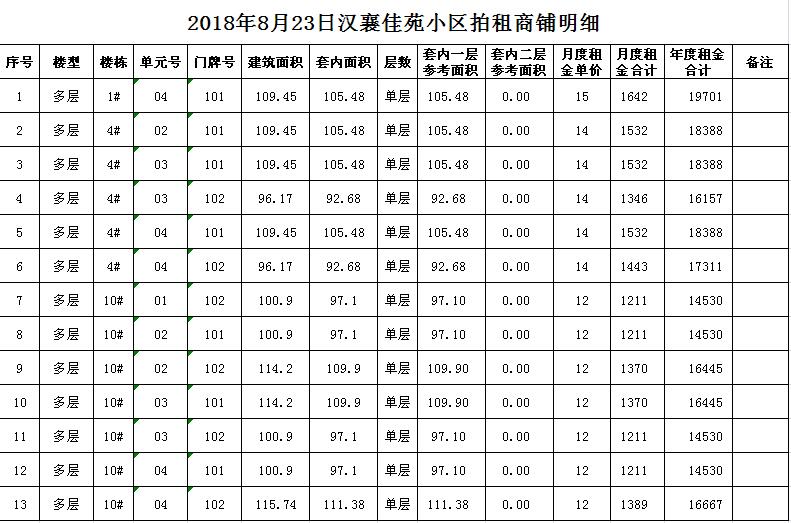 關注微信公眾號我公司受委托,定于2018年8月23日10時在中山南路55號本公司拍賣廳對以下小區(qū)商鋪公開拍租:湖西雅苑、和風雅致、漢襄佳苑、尚景園、潤和園、嘉和雅苑等。商鋪共數(shù)十套,均為空房,面積分別為一百至數(shù)百平方米不等。租期均為3年。